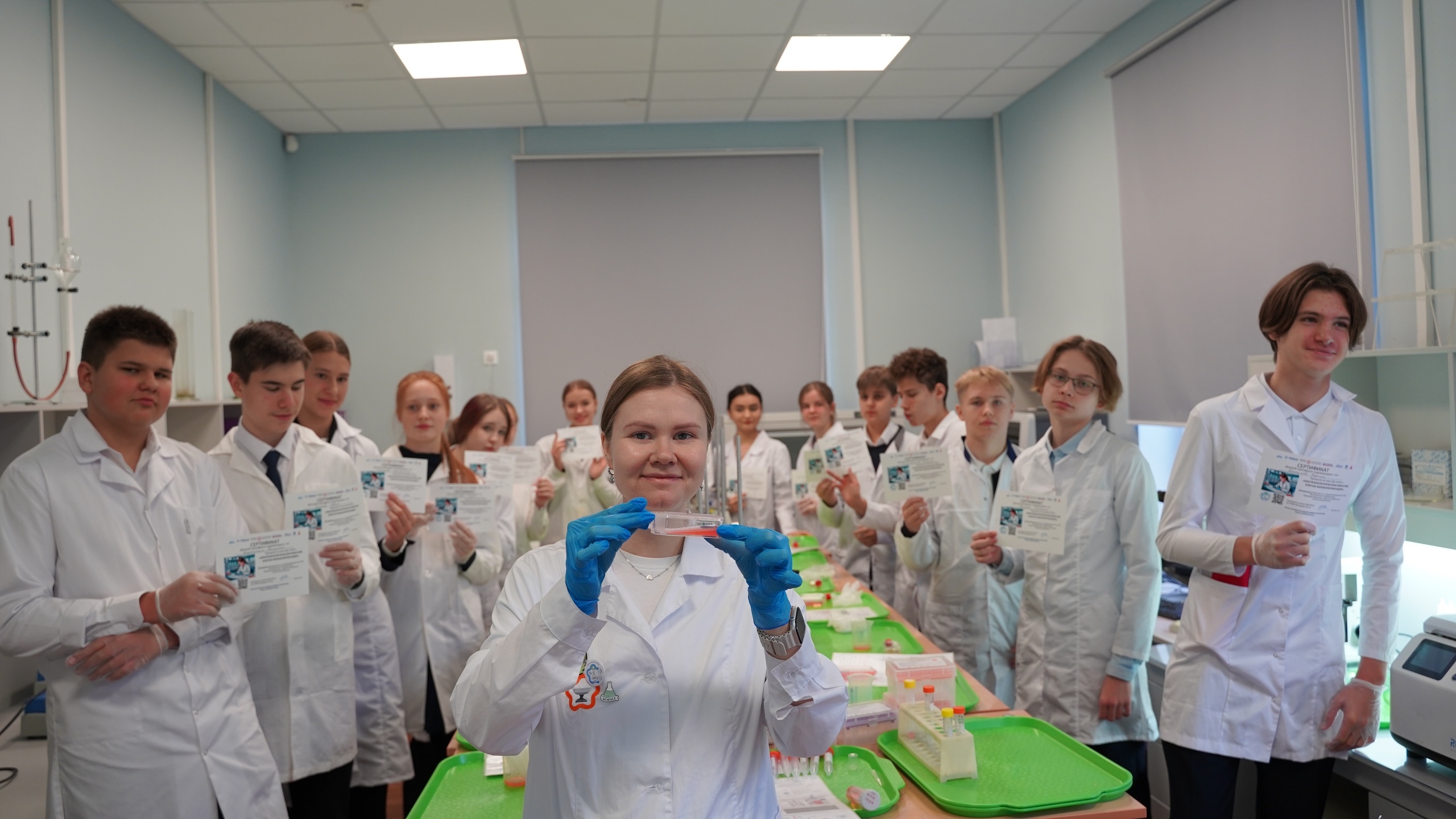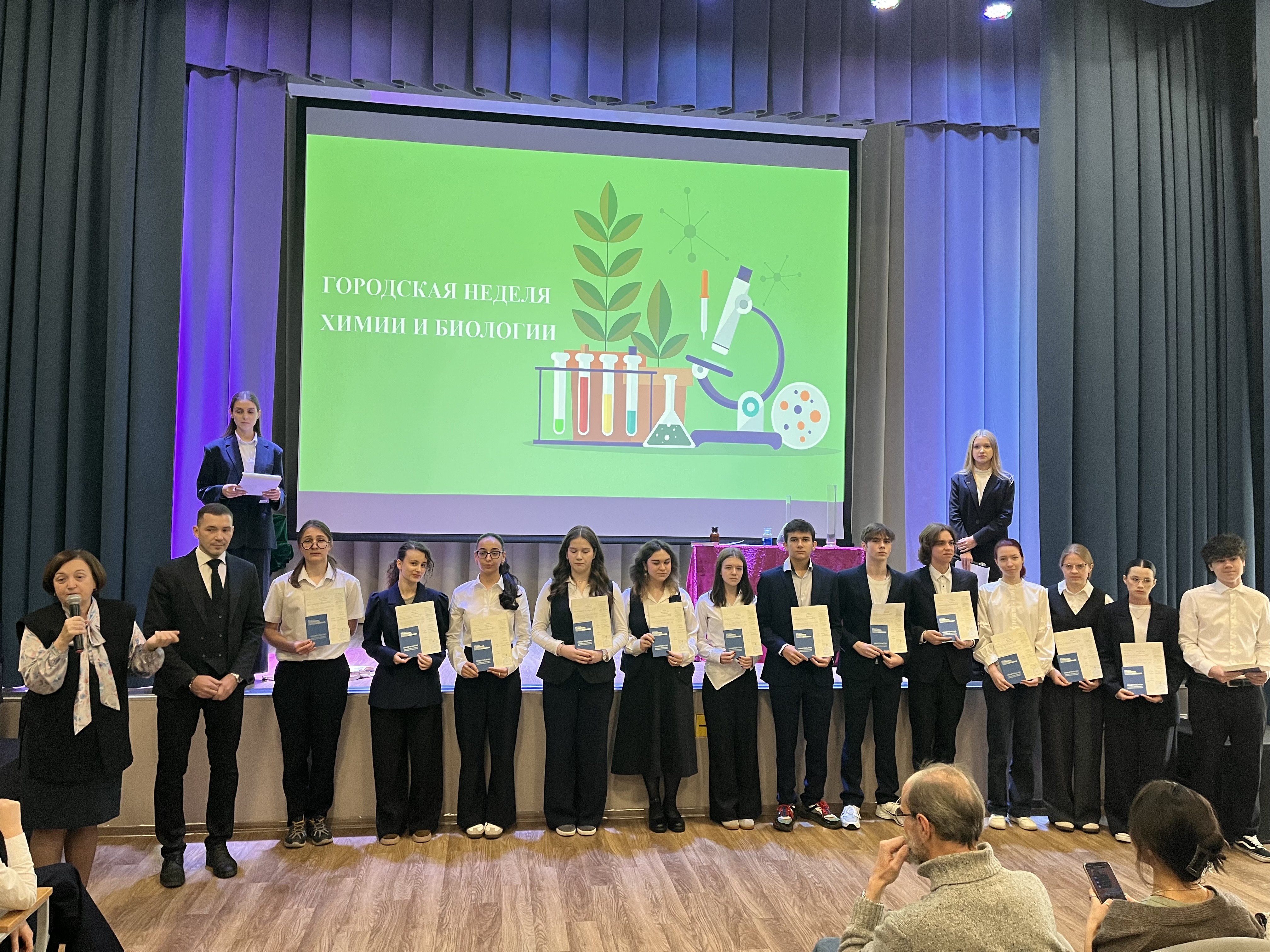 В рамках Торжественного открытия III Городской Недели химии и биологии были вручены Свидетельства о получении профессии Лаборант химического анализа учащимся 11 Курчатовского класса.