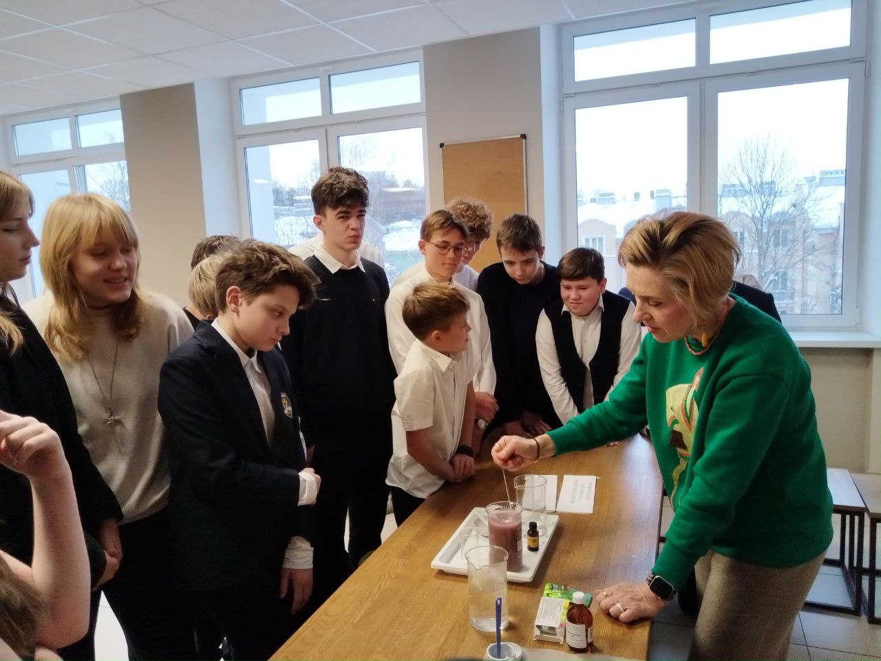 Ученики Курчатовского 10.1 класса стали участниками мастер-класса «Лимонная кислота и способы её получения», который является частью проекта «Академический десант» Санкт‑Петербургского государственного химико‑фармацевтического университета (СПХФУ).