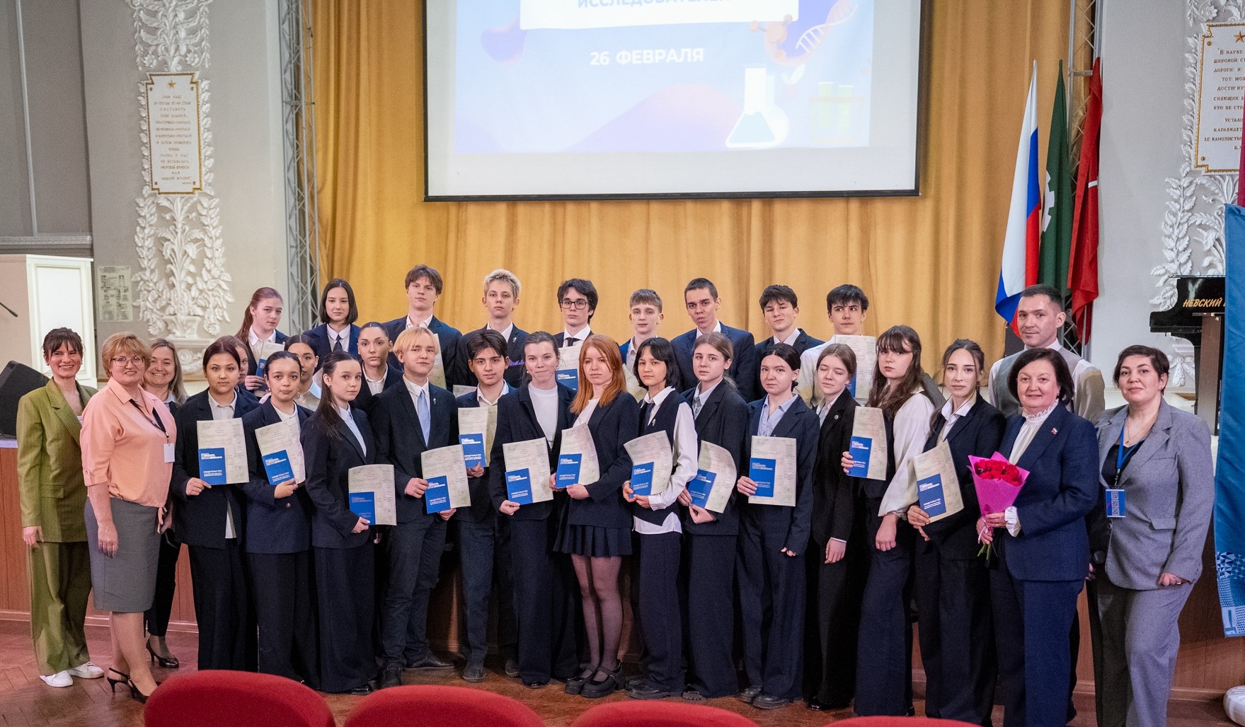 Участники торжественного открытия III Городской Неделии химии и биологии в образовательных организациях Санкт-Петербурга в Академической гимназии №56 имени М. Б. Пильдес.