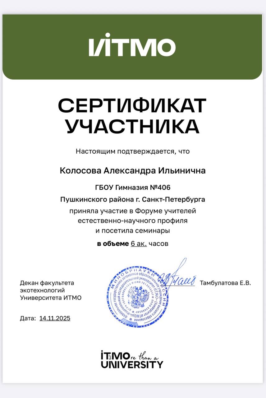Участие в Форуме учителей естественно-научного профиля на базе факультета экотехнологий Университета ИТМО.
