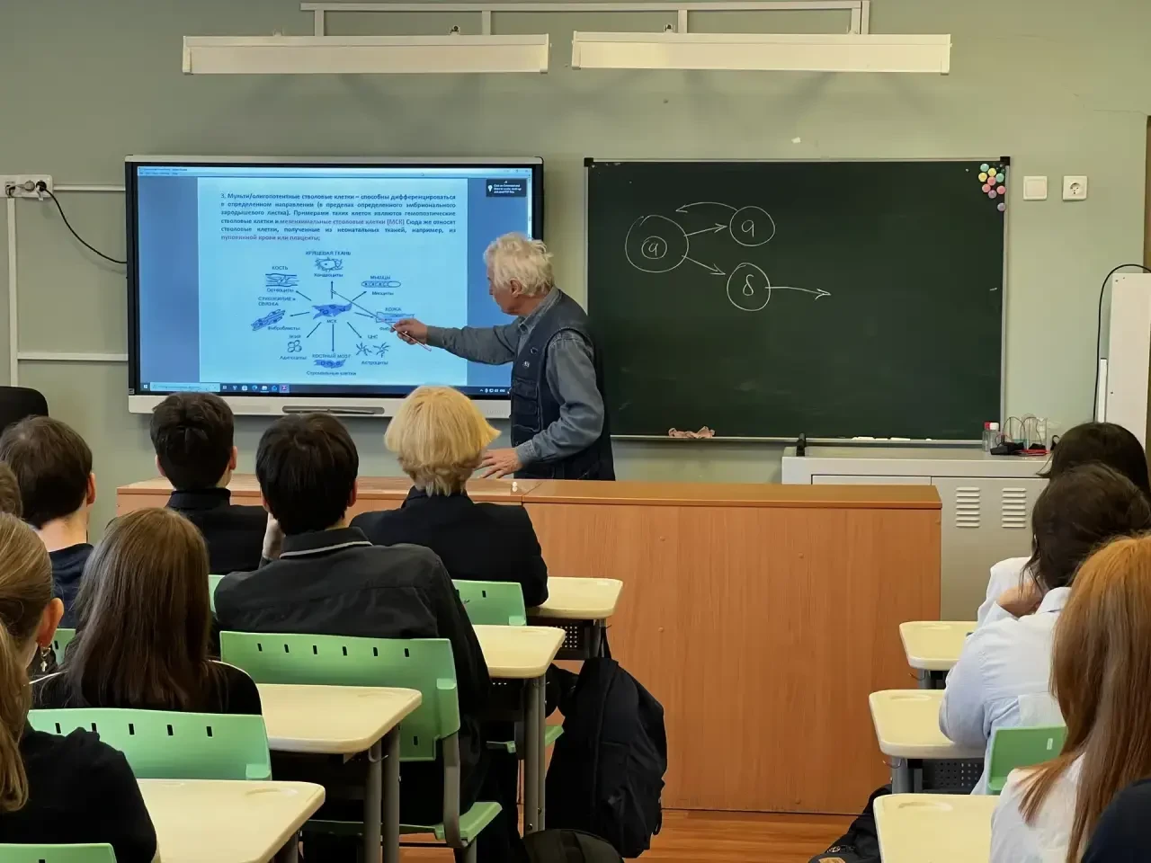 Учащиеся 9 и 10, 11 Курчатовских классов стали участниками уникальной лекции «Современные проблемы биологии и медицины», которую провел Обухов Дмитрий Константинович, доктор биологических наук, профессор, член Российской и Европейской академий естествознания, а также множества международных научных сообществ (Международной ассоциации морфологов, Российского нейробиологического общества и др.)