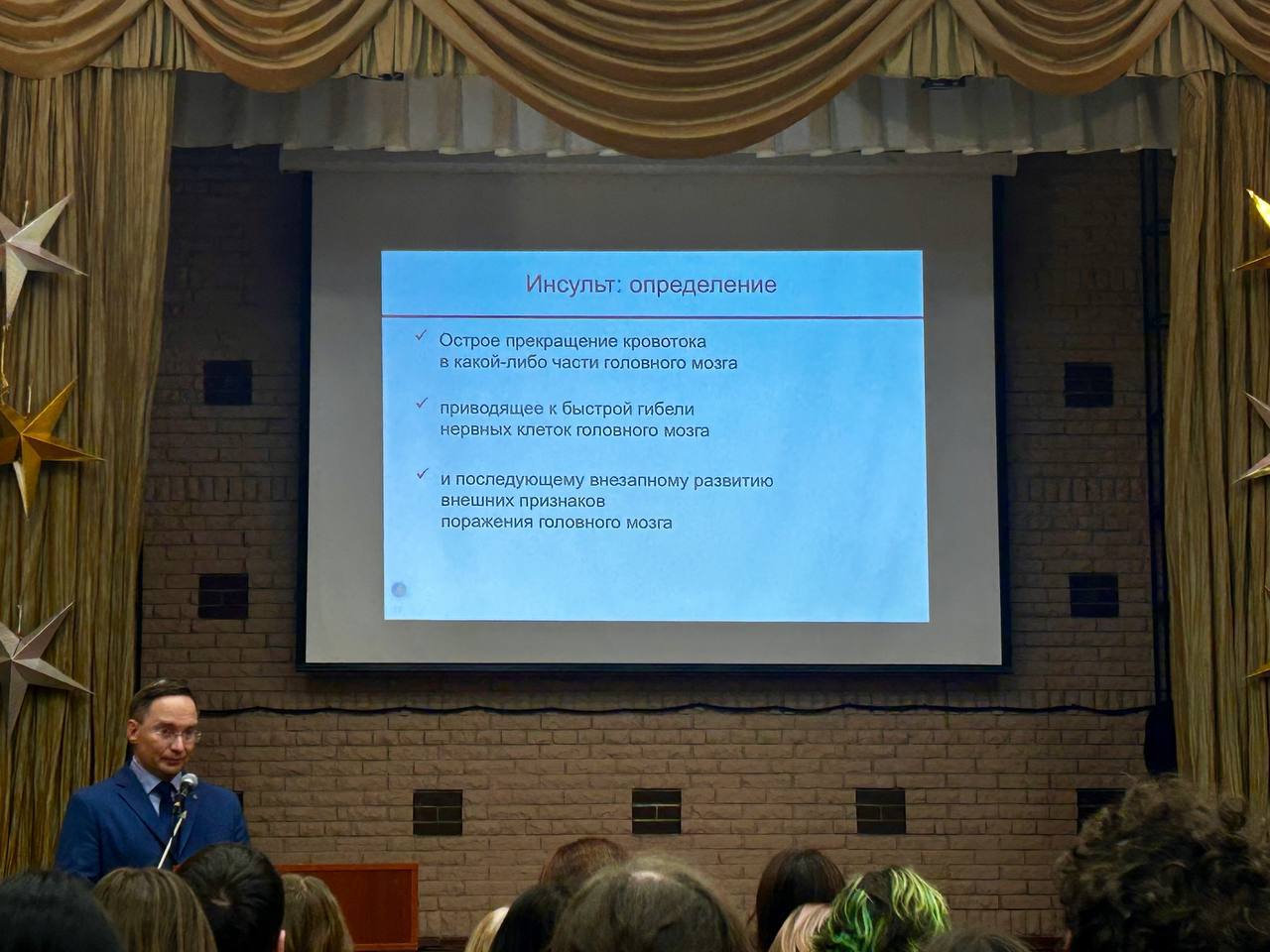Учащиеся 10 Курчатовского класса посетили лекторий «Наука в лицах» Эколого-биологического центра «Крестовский остров» по теме «Инсульт: что важно знать каждому».