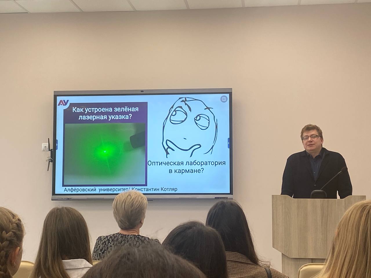 Ученики Курчатовских классов технологогического профиля стали участником открытого мероприятия «Как стать физиком и почему карьера ученного - это особенная жизнь», которую провела аспирант Кафедры фотоники физического факультета СПбГУ Самсонова Анна Юрьевна.
